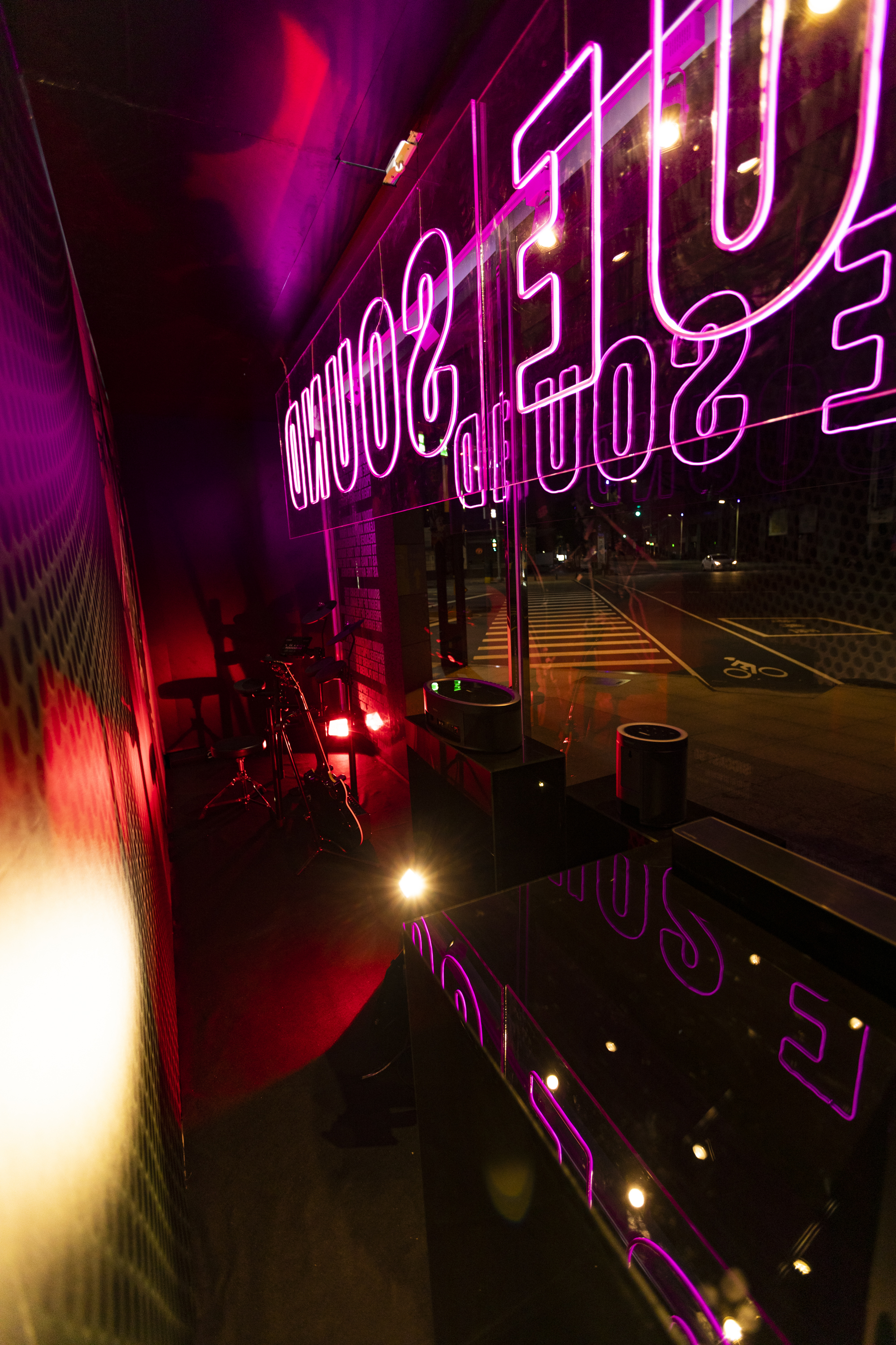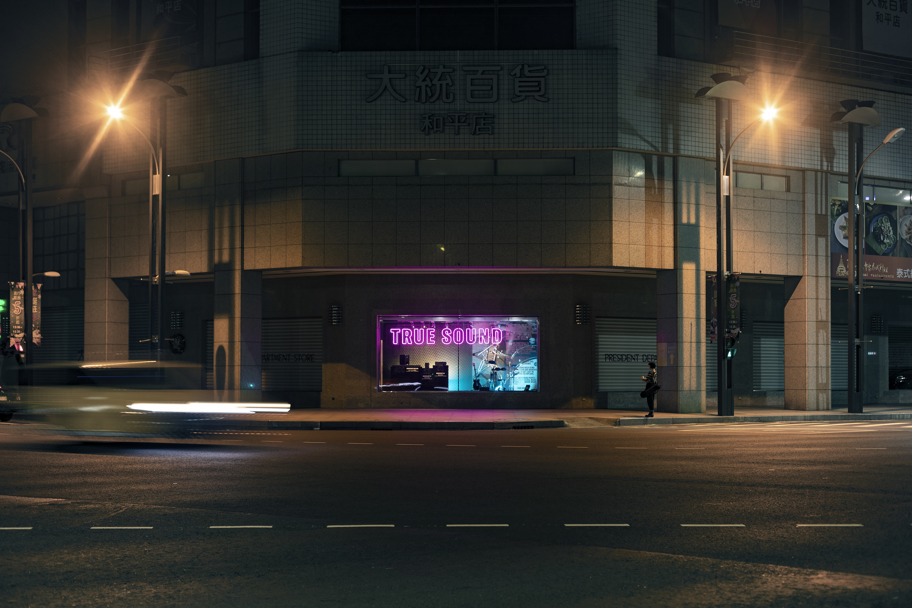 加上搖滾樂器,打造出深具臨場感的現場,彷彿將live舞台直接搬進櫥窗中。