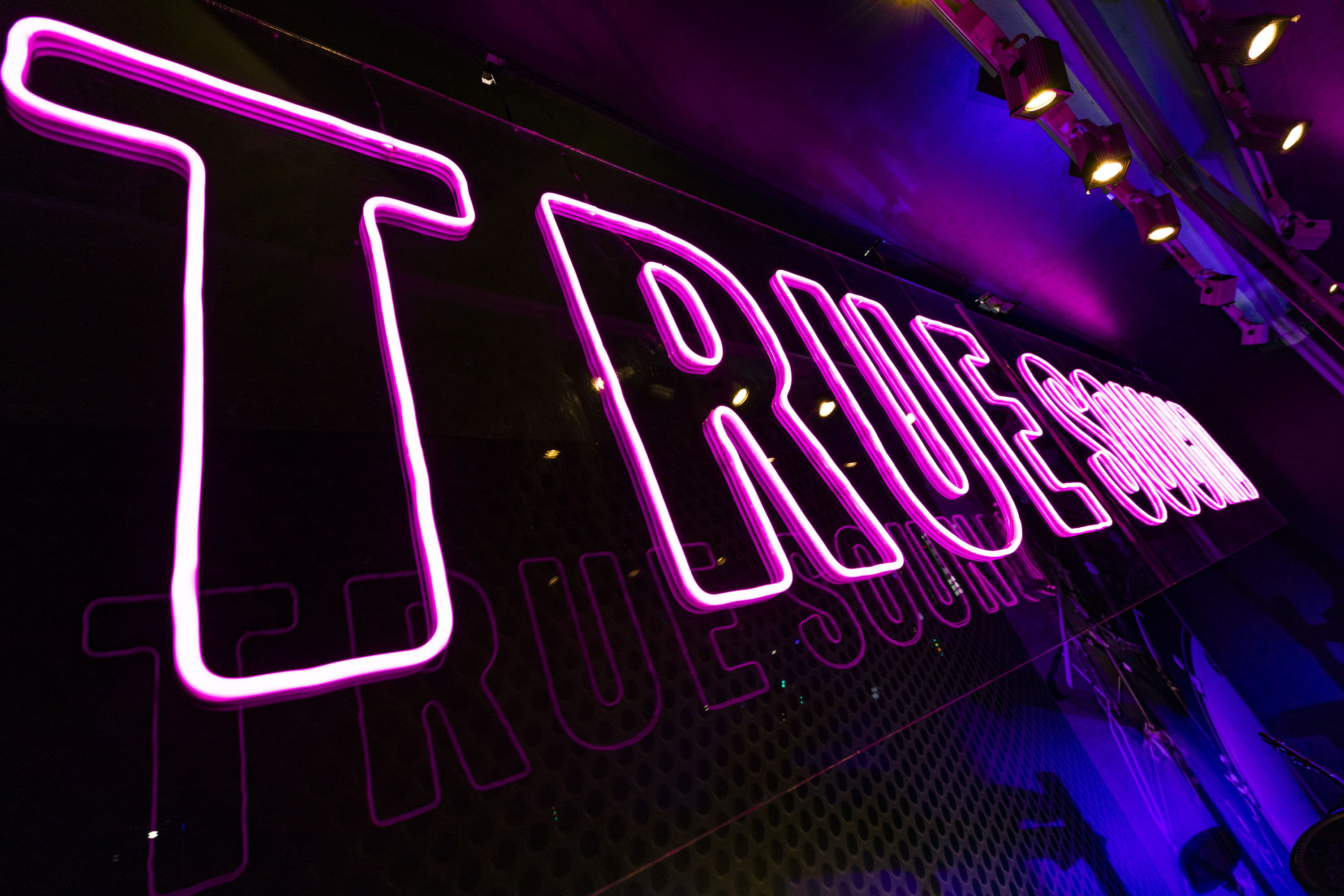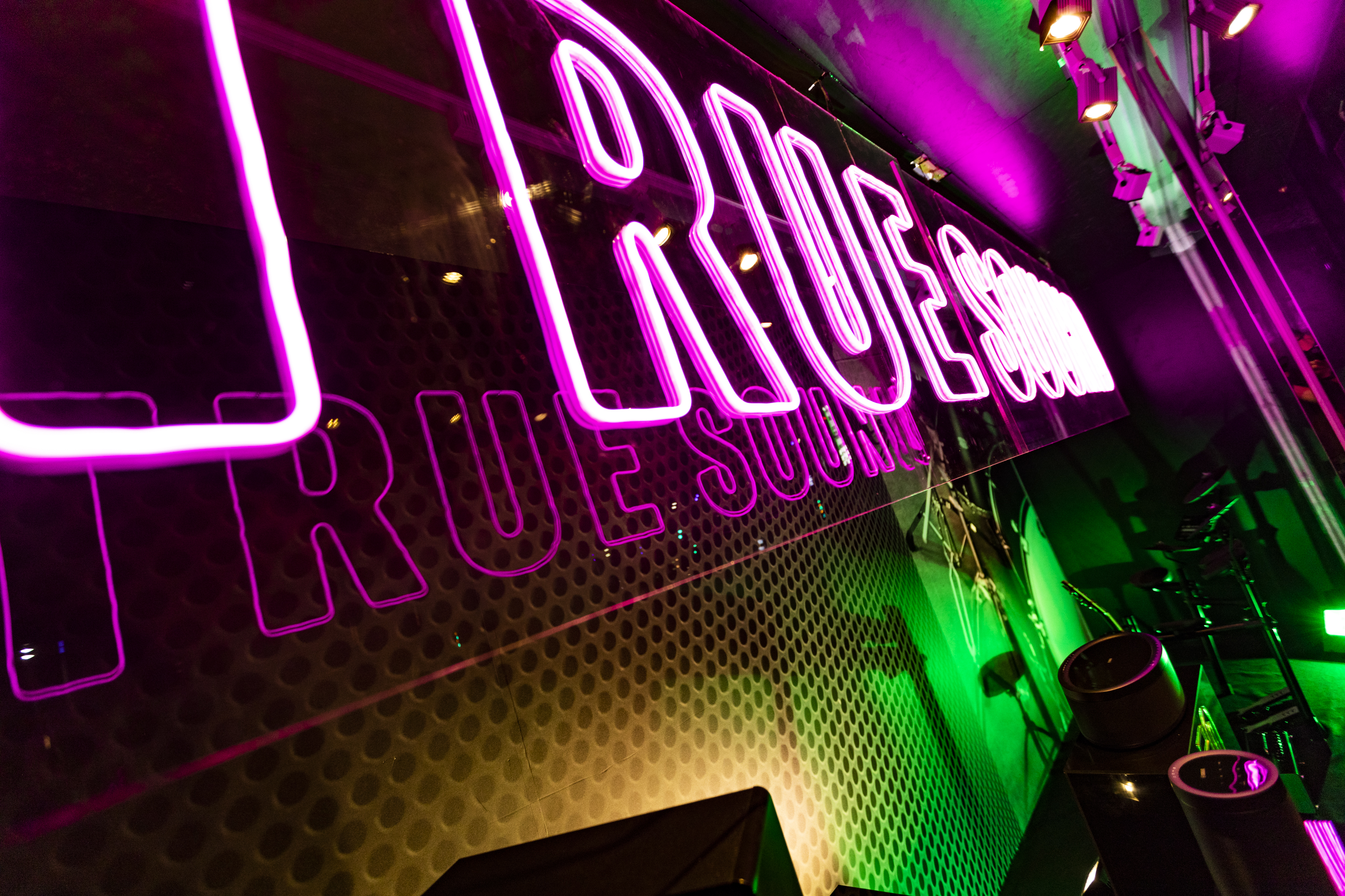 以螢光軟燈條和動感的光線變幻配置,