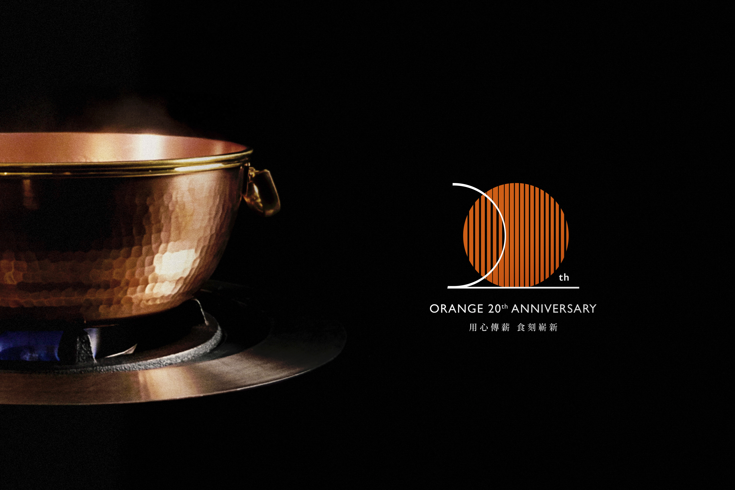 2020年是橘色涮涮屋創立的第20週年,橘色以「用心傳薪,食刻嶄新」為開端,標誌設計運用半圓與全圓層疊呼應品牌的世代傳承,線條在粗細漸變轉換中,醞釀著前行的力量。用心革新,接棒延續,期許未來的每一天,皆秉持著深耕20年的品牌精神,繼續與顧客、夥伴們走向下一個20年。